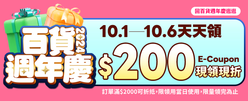 - E-Coupon面額100元(含)以下,購物車內商品需有一項售價高於或等於$100方可折抵