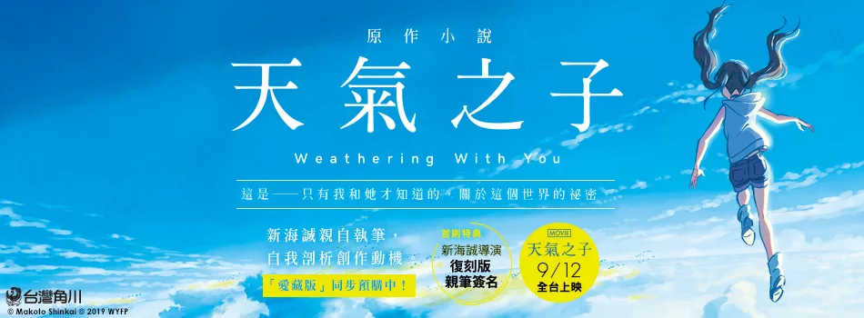 這是──只有我和她才知道的,關於這個世界的祕密。 高一夏天,帆高自故鄉離島離家出走,來到東京。但獨立生活的夢想很快於現實中破滅,東京連日的大雨,也彷彿象徵帆高晦暗的未來。 在困頓的生活中,帆高於人潮擁擠的都會一角,邂逅與弟弟相依為命的不可思議少女──陽菜。「馬上就會放晴了喔。」廢棄大樓雜草叢生的屋頂上,在陽菜這句話之後,烏雲散去、陽光灑落,灰色的世界恢復了鮮豔色彩……