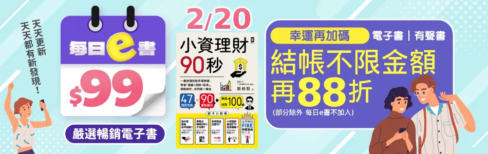 【2/14-2/22!電子書、有聲書結帳不限金額再88折!】