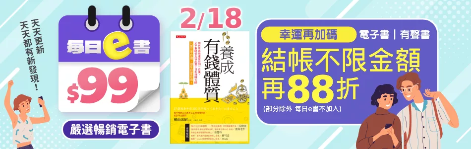 【2/14-2/22!電子書、有聲書結帳不限金額再88折!】