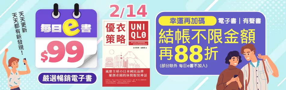 【2/14-2/22!電子書、有聲書結帳不限金額再88折!】