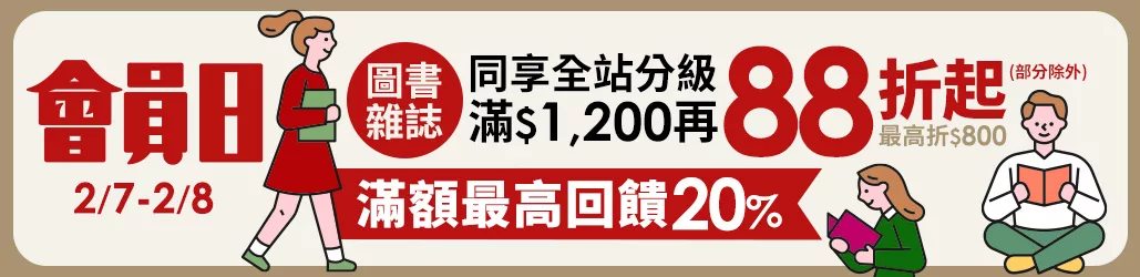2/7-2/8會員日|圖書雜誌同享全站分級滿$1200再88折起,滿額最高20%回饋