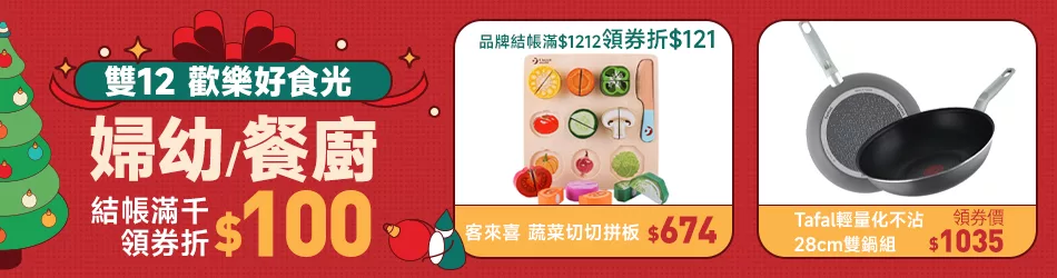 12/11-12/12|婦幼+餐廚 _結帳滿千領券折$100