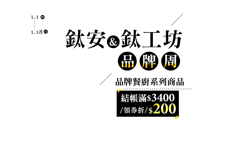 領折價券 1/1-/18│鈦安&鈦工坊│滿$3400領券現折$200
