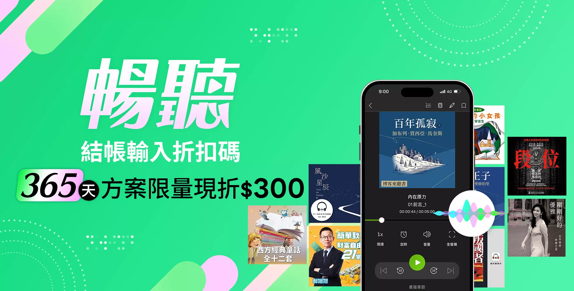 12/5-31訂閱暢聽365天,輸入@au2512折$300