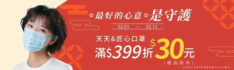 【天天】PM2.5防霾口罩 B級防護 30入/盒 (紅色警戒專用) L尺寸-白色