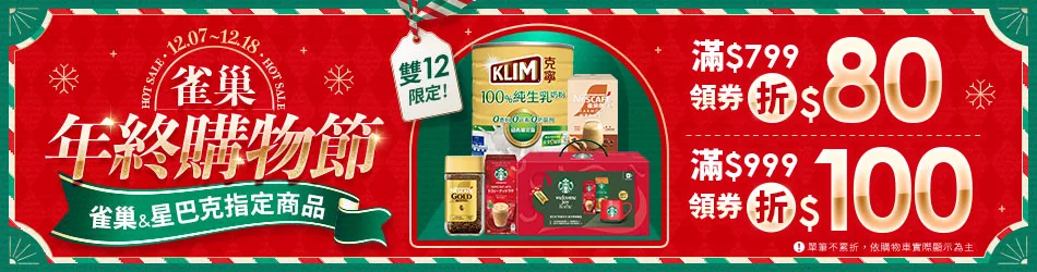 12/7-18雀巢x星巴克家享結帳滿$799領券折$80