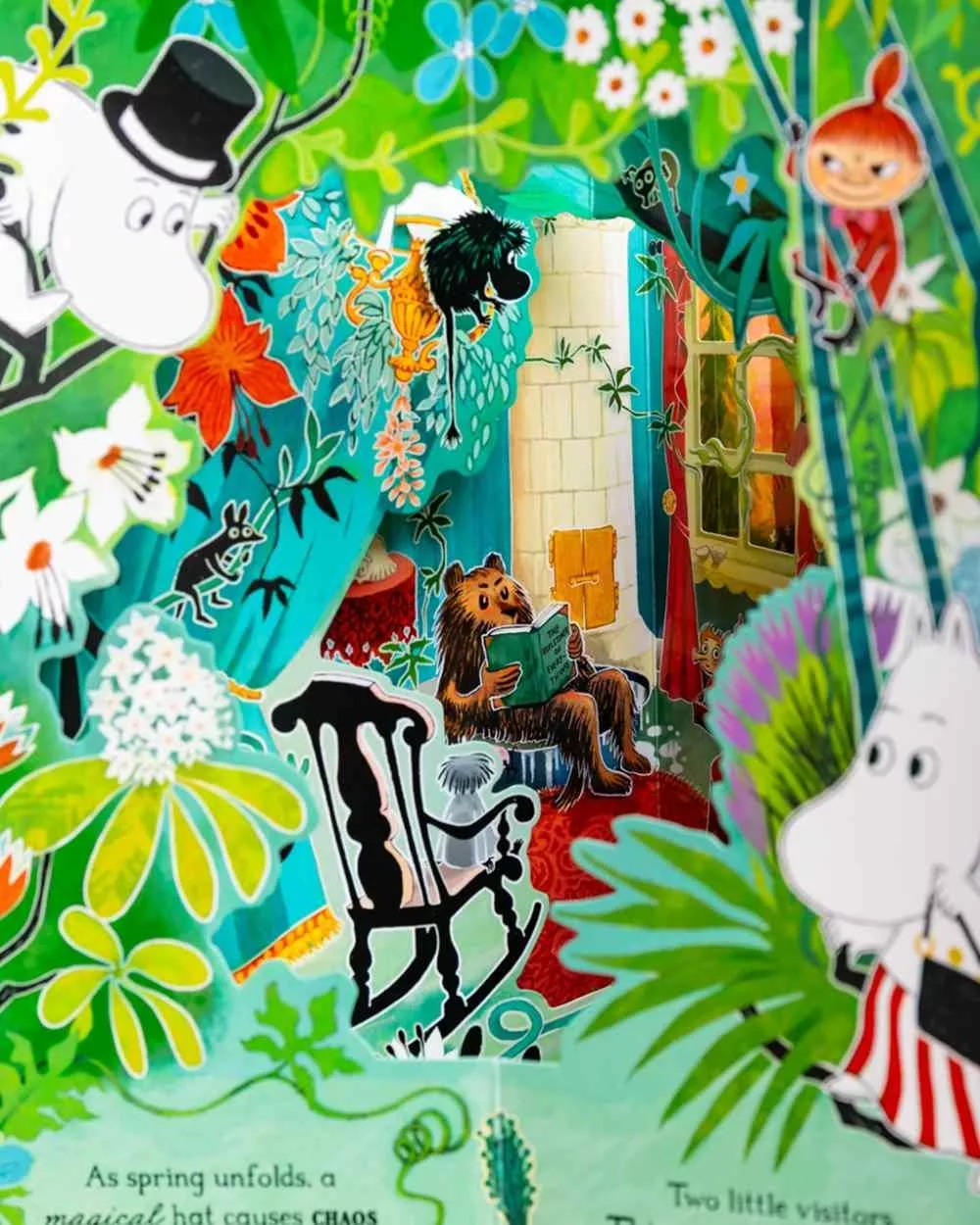 歡迎光臨姆米(Moomintroll)的家,姆米在家裡沿著風箏線尋找他的風箏,他拉著一根紅線,但這根線會連接到哪裡?跟著姆米的腳步,你會看到總是四處流浪的阿金(Snufkin)吹著他心愛的口琴,善良愛撒嬌的歌妮(Snorkmaiden)在空中盪鞦韆,小美(Little My)從樓梯上滑下來⋯⋯。一路上掀開房門、打開櫥櫃、翻開門,探索嚕嚕米家的這趟旅程讓你發現許多新奇的事。