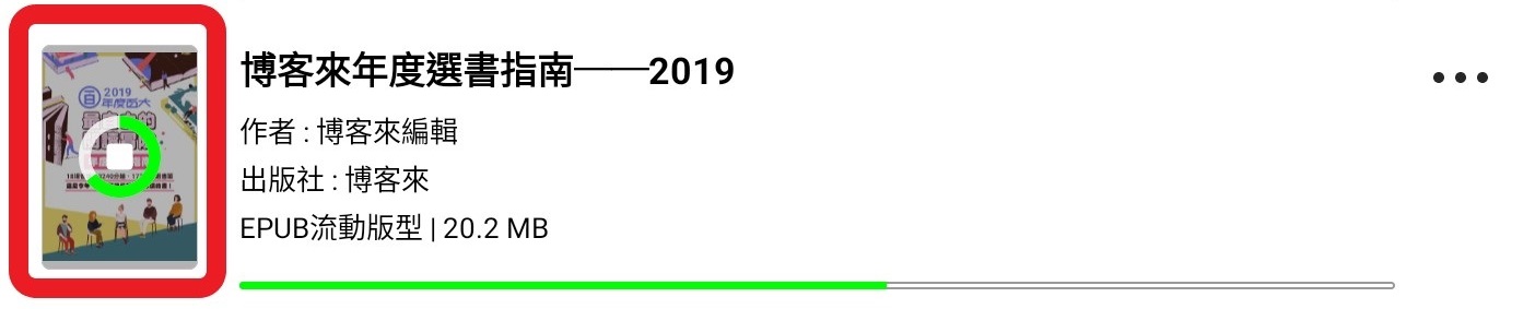 在書櫃點選書封即會出現下載圖示,下載完成後再點書封,即會開啟電子書