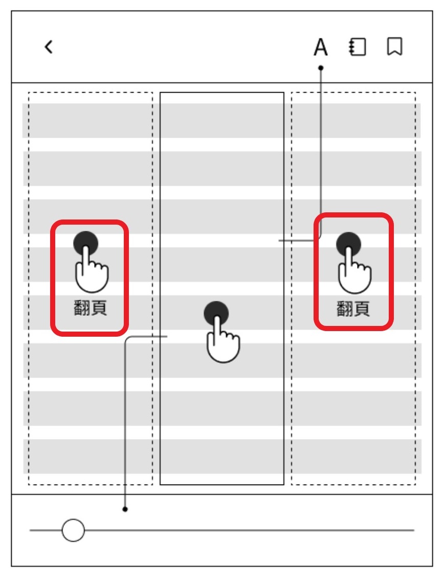 1.左右兩側皆可翻頁,可依個人喜好使用慣用手側來翻頁