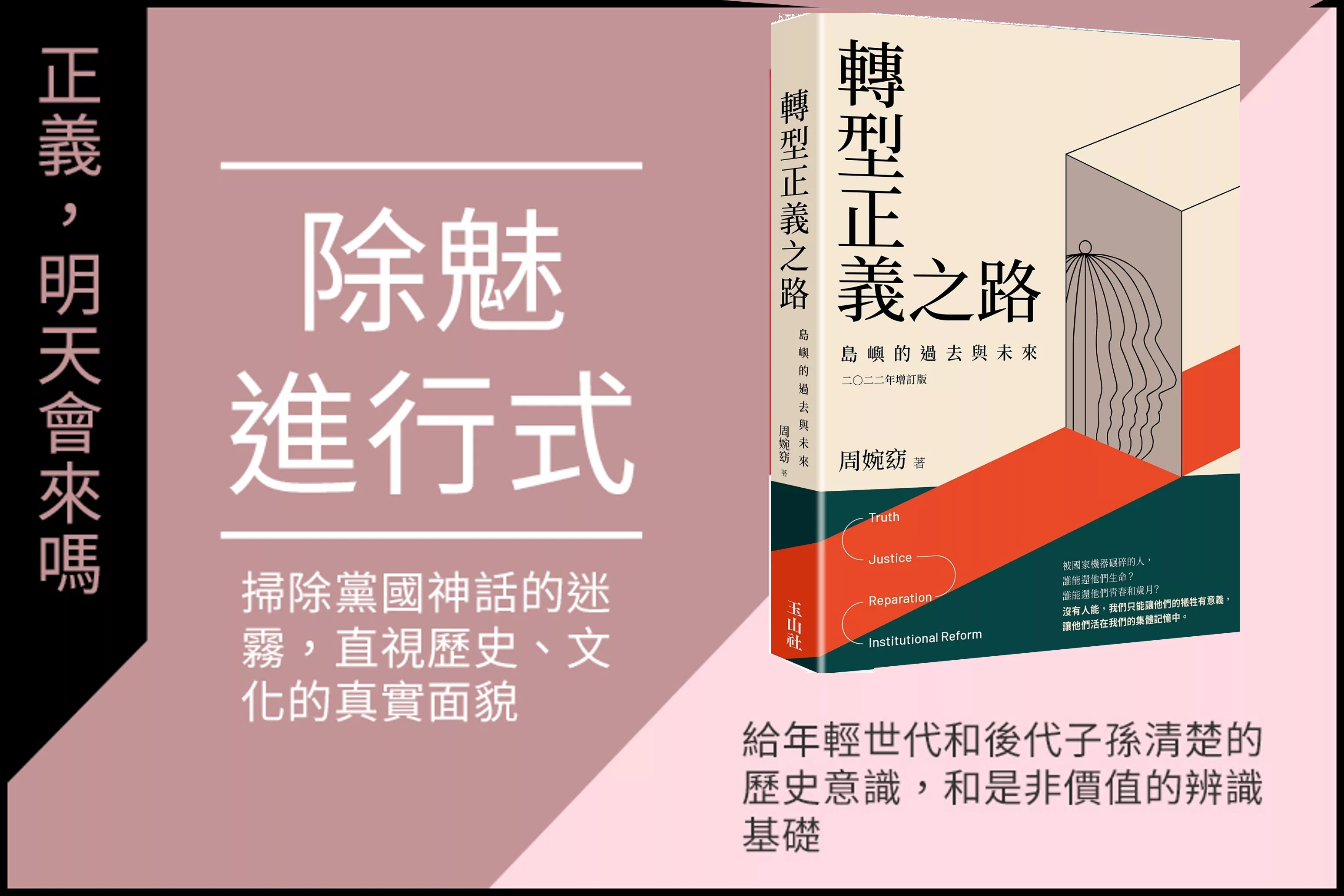 「儘管臺灣已經民主化,但至今因內部存在不同的歷史記憶而爭辯不已,也因資源配置、國家目標差異,不時引發衝突。民主化之後新生的臺灣共同體仍須戰戰兢兢、努力維繫認同與向心:包括如何增進臺灣這塊土地上先來後到不同族群之間的相互理解;如何對一起走過的苦難與變革形成集體記憶、產生共感;如何使不同群體的權益都能獲得確保、人們得以安身立命,並珍視由此而來的幸福感與成就感。當人們不僅滿意並珍惜現在的生活,且願意為未來攜手打拚、挺身護衛,臺灣共同體才能夠堅定凝聚、屹立不搖。」
