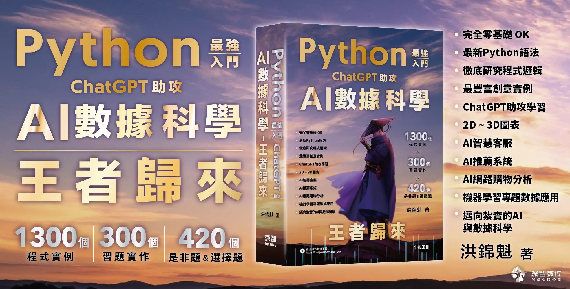 這本書也是目前市面上講解Python書籍中語法最完整,當讀者學會Python後,本書將逐步帶領讀者邁向數據科學、機器學習之路。Python以簡潔著名,語法非常活,同時擁有非常多豐富、實用的模組,本書筆者嘗試將Python語法的各種用法用實例解說,同時穿插使用各種模組,以協助讀者未來可以更靈活使用Python,以奠定讀者邁向更高深學習的紮實基礎。