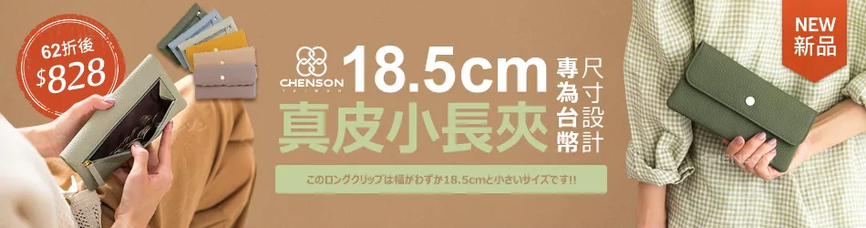 CHENSON真皮 18公分長夾第二代 超薄6卡翻蓋小長夾 (W26487-X8) 淡綠