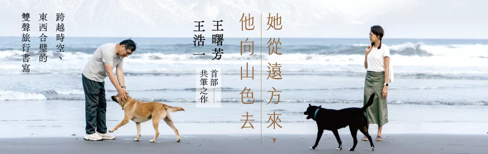 《她從遠方來,他向山色去》是王浩一與王曙芳在人生中後段相遇相戀後,首部共筆之作,記錄兩人截然不同的旅行風格與生命經歷。