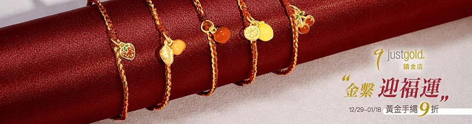 【Just Gold 鎮金店】金果盛宴-雙喜檸門 黃金手繩(網路限定)