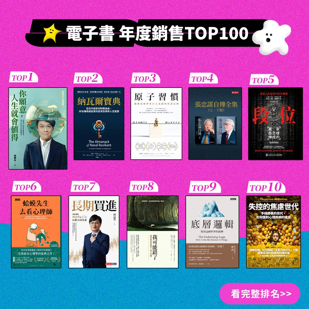 【活動資格】:於活動期間(以實際完成結帳流程之訂購時間為準)購買BooksPad電子套書+閱讀器優惠組合,輸入代碼即可折抵100元。