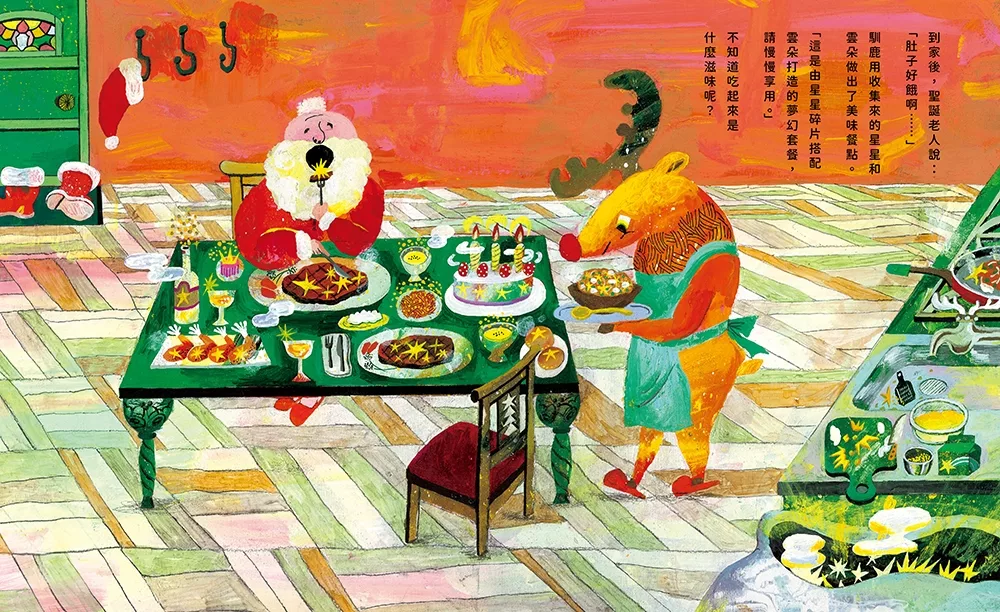 聖誕老人也會過聖誕節嗎?總是在付出的聖誕老人,這次也感受到朋友們對他的愛,度過一個歡樂溫馨的聖誕節。真正的聖誕精神是什麼呢?關心身邊的人,為彼此付出,和最愛的人一同共享節日的美好……透過本書,陪孩子了解歲末團聚的意義。