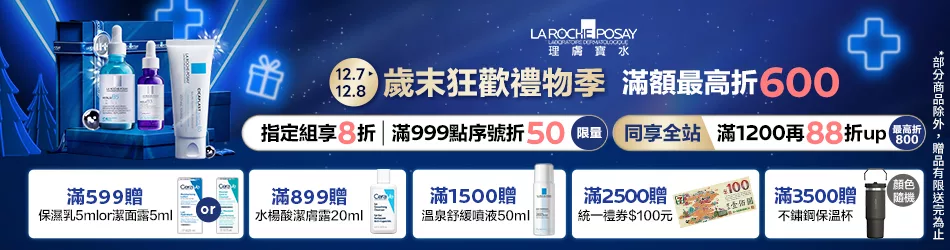 4. $100 單品折價券將於2025/12/30起陸續發送至您會員專區留存的E-mail信箱。單品折價券適用於【理膚寶水】品牌指定商品滿下單現折$100元,折價券使用期間為2026/01/01-2026/01/31,屆時建議您保留贈送信件,或登入「會員專區>優惠 / 帳戶餘額>