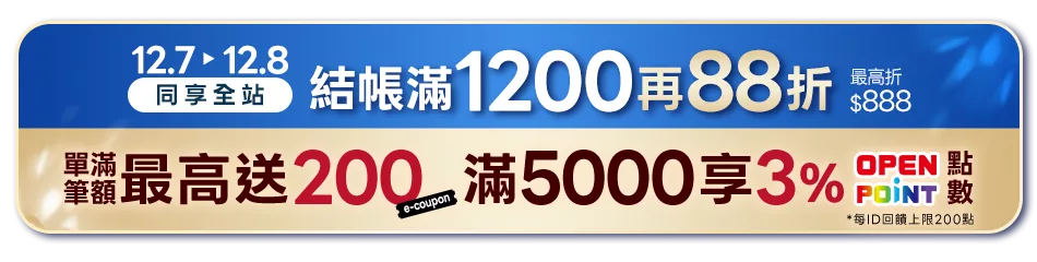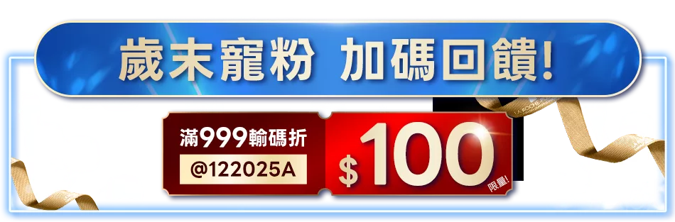 5. 2025/12/22(一)-2025/12/31(三)購買之訂單,折價券將於2026年1月底進行發送,使用期間為2026/2/1-2026/2/28。
