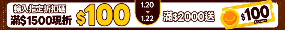 1/1-1/31限定|服飾指定商品滿$999折$100