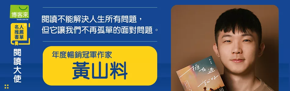 ![]() 年度暢銷冠軍作家。 【個人經歷】 .總銷量破60萬本 華文暢銷作家 .IG、FB、YT社群擁有破百萬粉絲, 透過小說與散文療癒讀者。 出版作品: 2025自我探索散文《把日子 慢慢變好》 2024心靈救贖小說《心很小 裝喜歡的事就好》 2023青春疼痛小說《人間孤獨 卻與你一見如故》 2023失戀療傷小說《餘生是你 晚點沒關係》 2022奇幻初戀小說《那女孩對我說》 2022青春戀愛小說《好好再見 不負遇見》 2021療癒系散文集《好好生活 慢慢相遇》 IG: iam_3636 FB:黃山料 YT:黃山料 |