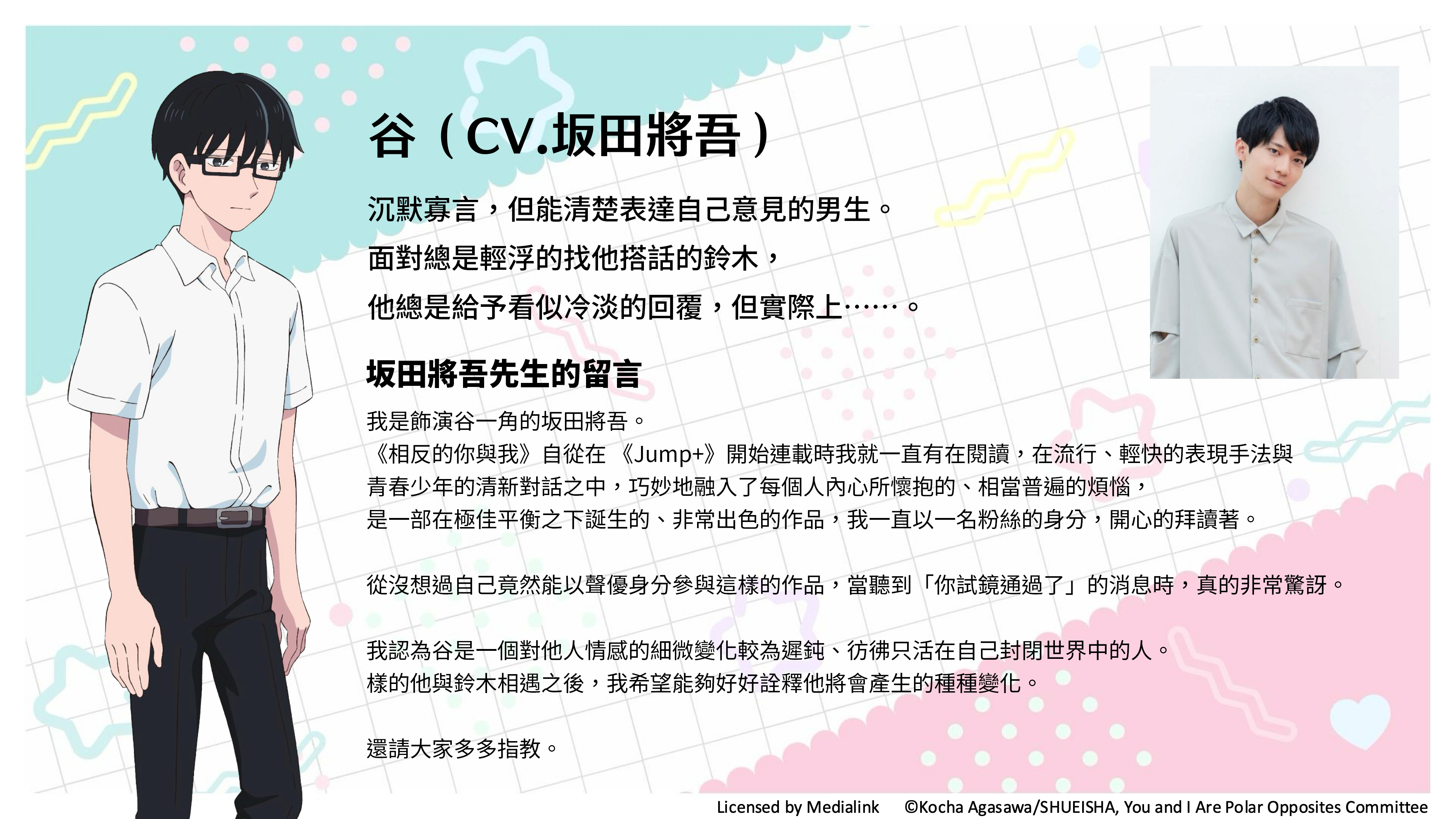 習於察言觀色的活潑女子×謹守個人原則的文靜男子 讓人心有戚戚焉、共感MAX的寫實戀愛喜劇,開幕!! 活力充沛但在意周遭目光的鈴木, 正在單戀勇於表達自己意見的文靜男子・谷同學。 可是鈴木因為太在意周遭的目光, 無法用平常心跟谷同學相處,總是亂搭話… 某天鈴木終於鼓起勇氣, 試著約谷同學一起回家,結果…!? 青春又逗趣的戀愛物語,心動登場❤