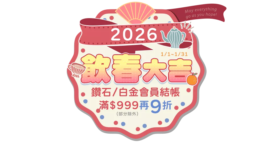 優惠折扣 1月限定 鑽石/白金會員》飲春大吉指定品結帳滿$999再9折