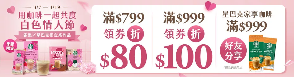 3/7-3/19雀巢x星巴克家享結帳滿$799領券折$80