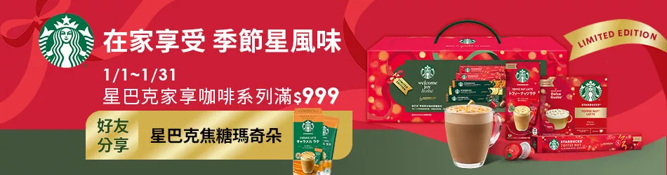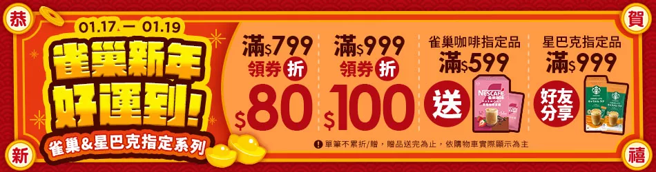 1/17-1/19雀巢x星巴克家享結帳滿$799領券折$80