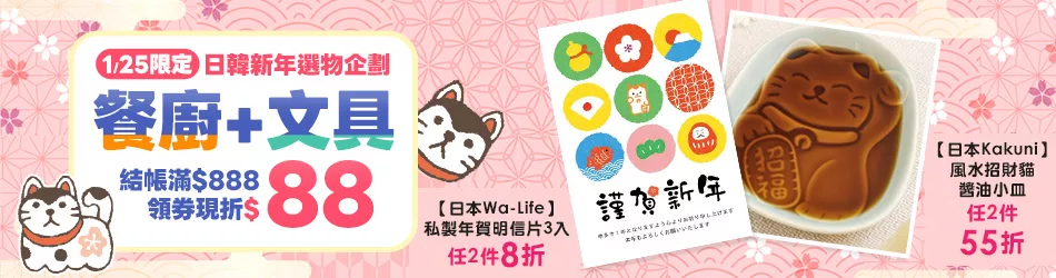 1/25限定|餐廚+文具 結帳滿$888領券現折$88