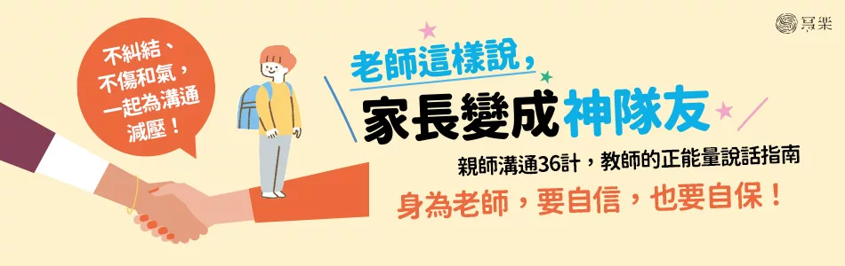 當親師雙方都能好好把話說出口,不僅能互相幫忙減壓、降低「溝通成本」,老師自己更能張開語言的保護傘,無須動輒憂慮被告,可以把心力、能量放在更值得的地方!