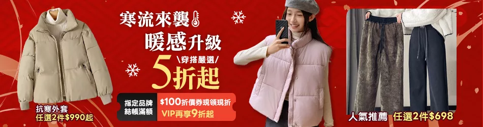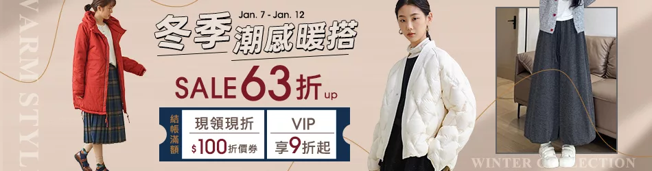 1/1-1/31限定|服飾指定商品滿$999折$100