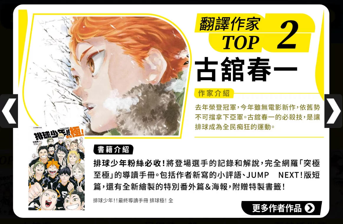有歷任責編與老師多達90頁的長篇對談,《排球少年!!》從2012年連載至今的大小企劃、週邊商品的介紹、還有作品10週年紀念主視覺圖、出版物未收錄的插圖和漫畫等等,極具收藏價值,排球少年迷不容錯過。
