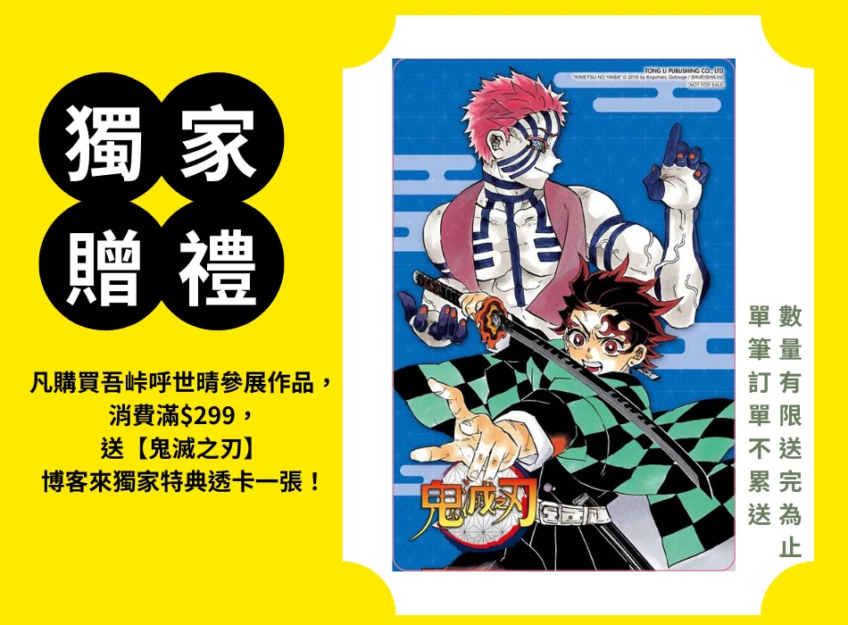 本套書收錄1-16集,那田蜘蛛山、柱合會議、無限列車篇、潛入遊郭大作戰、煉刀師之村交手、柱訓練篇精彩篇章!炭治郎、禰豆子與無慘的命運將有什麼意想不到的發展!?