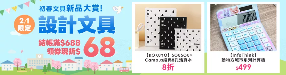 2/1限定|設計文具結帳滿$688領券現折$68