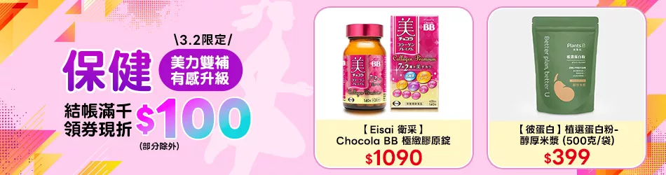 3/2 保健結帳滿千領券折$100(部份除外)