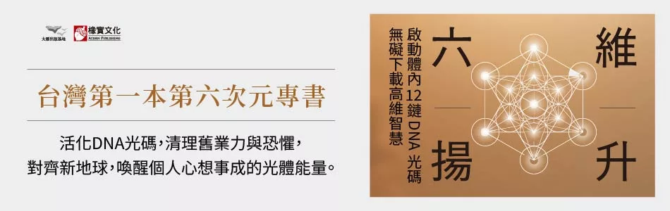 第六次元,是第三次元的上層結構,是事物顯化的原型場域。在當前地球從三維向前進化的飛躍過程中,我們若能讓光照進潛意識,恢復自身原有的內在知曉,就能與新地球的能量藍圖融合,錨定在第五次元以上的意識頻率。本書的目的,是為了幫助我們重新啟動這些DNA鏈,重建和宇宙智慧的連繫,成為新地球的共同創造者。透過書中的冥想練習,啟動沉睡的光碼,揚升至五維及六維頻率,憶起所有星際祖先的愛,並下載亞特蘭提斯、古埃及等高度文明的智慧。